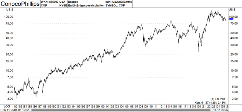 Der zuständige Analyst Adam Baker weist darauf hin, dass der Ölkonzern große Akquisitionen zu günstigen Preisen getätigt hat, ohne die Bilanz zu belasten. ConocoPhillips knüpft die Barrenditen an den Cashflow und hat sich verpflichtet, 30% des operativen Cashflows an die Aktionäre zurückzugeben, wodurch das Dividendenwachstum moderat bleibt, aber überschüssige Barmittel für Rückkäufe und eine variable Dividende jedes Jahr gebunden werden.
