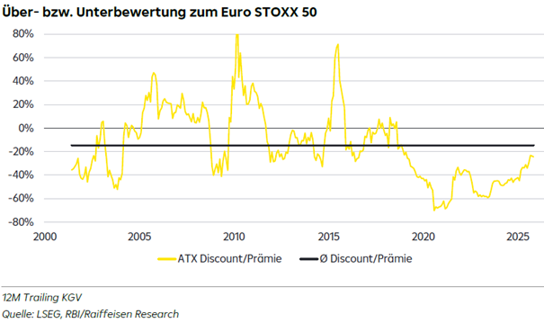 2. Umkehr des historischen Fluchs: Was dem Index nach der Blasenbildung 2007 zum doppelten Verhängnis wurde – die übermäßige Gewichtung von Finanzwerten in Kombination mit der starken Osteuropa-Exponierung (CEE) – ist heute sein größter Treiber. Die Erholung der CEE-Wirtschaften und die Neubewertung europäischer Finanzwerte nach der Zinswende haben die Gewinndynamik im ATX in den letzten Quartalen stark beschleunigt und einen stärkeren Gewinnanstieg (Ergebnis je Aktie – earnings per share - EPS) als am breiten europäischen Markt ermöglicht.