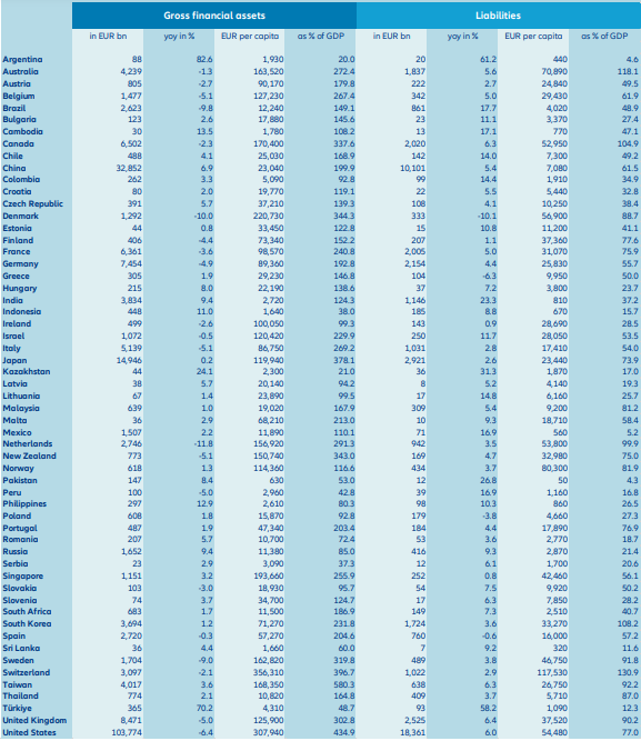 Finanzielle Vermögenswerte und Verbindlichkeiten (brutto) nach Ländern, 2022