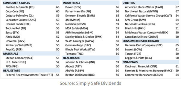 Die nachfolgende Tabelle zeigt die Namen jener 46 Unternehmen, die laut den Ausschüttungsexperten von Simply Save Dividends derzeit am US-Aktienmarkt als Dividenden-Könige einzustufen sind. Einen sehr guten Eindruck unter den Gesellschaften auf der Liste machen unter anderem die Anteilsscheine von Coca-Cola, PepsiCo und W.W. Grainger. Denn diese drei Titel können für die vergangenen Jahrzehnte mit sehr stabilen Kursaufwärtsbewegungen aufwarten.