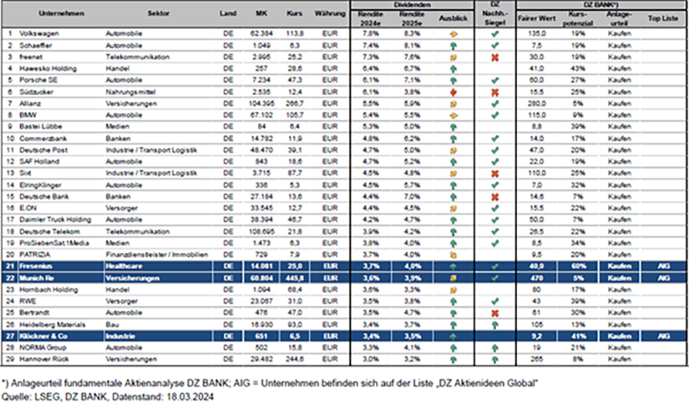 Dividendensaison 2024: Dividendenstarke deutsche Aktien mit Kurspotenzial plus die Auschüttungstermine der wichtigsten deutschen Aktien