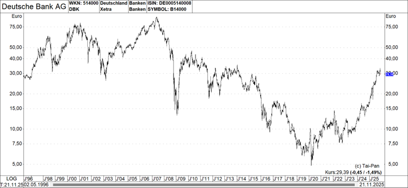 DZ Bank-Topfavorit für 2026, Nr. 2: Deutsche Bank (ISIN: DE0005140008 - aktueller Kurs: 29,39 Euro – Kursziel: 35,50 Euro – Kurspotenzial: 20,8%)
