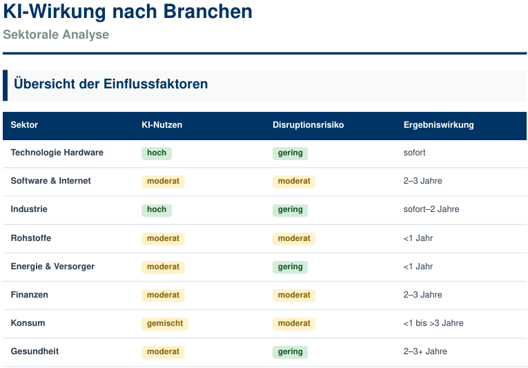 Die Analysten haben mehr als 30 Branchen untersucht und zeigen, dass sich die Wirkung von KI nicht pauschal erfassen lässt. Stattdessen kommt es darauf an, wie gut einzelne Unternehmen in der Lage sind, neue Technologien in ihre Geschäftsmodelle zu integrieren. Faktoren wie Datenzugang, digitale Infrastruktur und finanzielle Ressourcen spielen dabei eine zentrale Rolle. Für Investoren bedeutet das: Breite Branchenwetten verlieren an Aussagekraft, gezielte Einzeltitelauswahl gewinnt an Bedeutung.